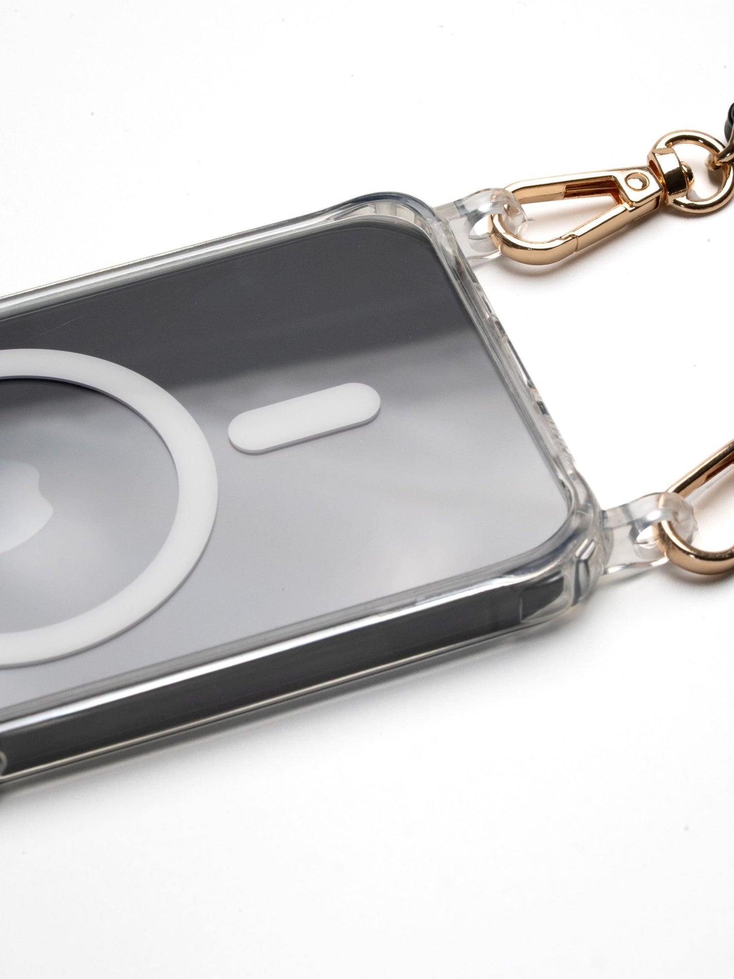 Die Handyhülle ist flexibel, stoßfest und kann mit oder ohne Ösen getragen werden – ideal für Handyketten oder als klassische Hülle. Ideal als Magsafe Hülle mit Band in transparent.