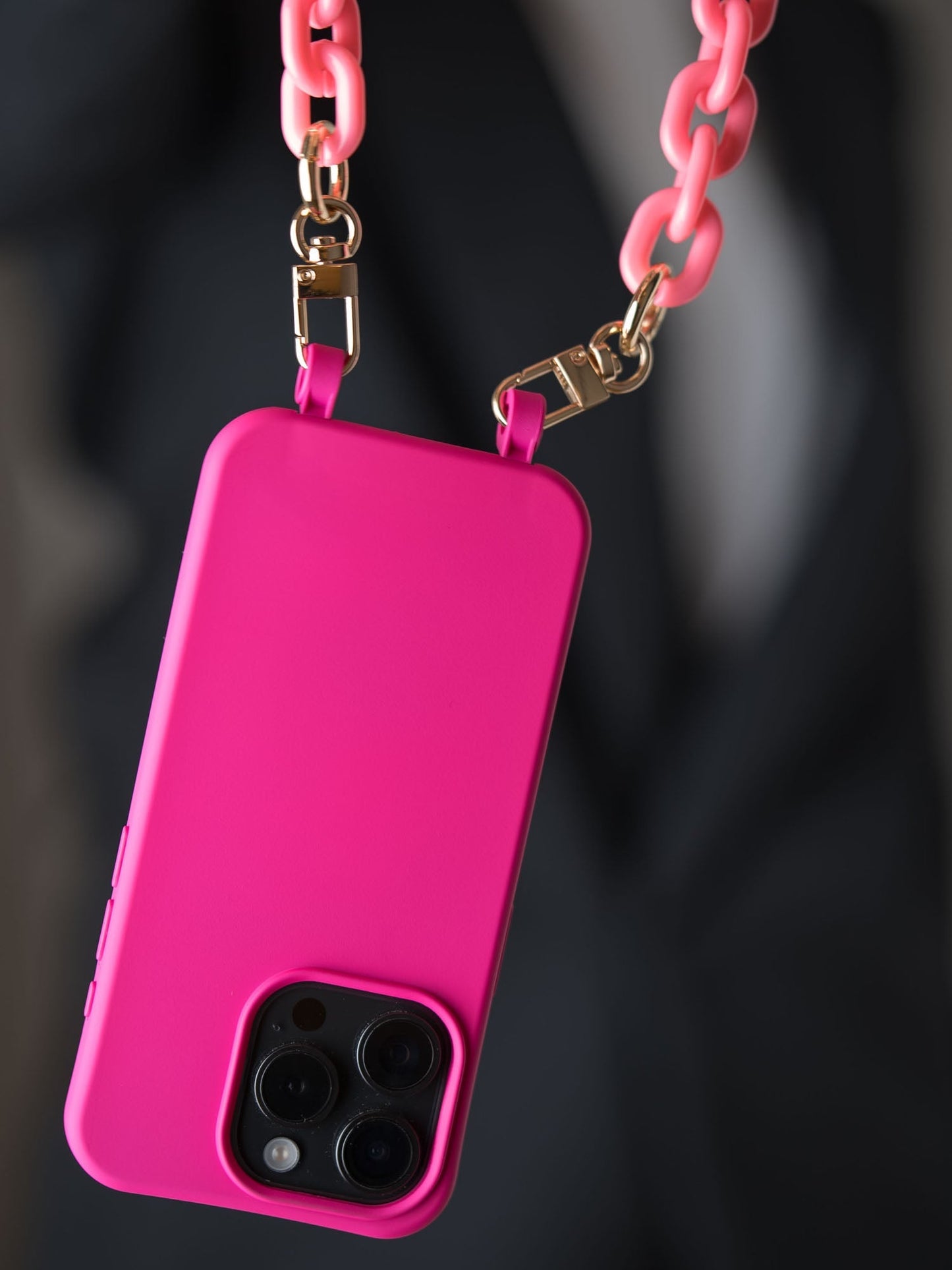 Die Handyhülle ist flexibel, stoßfest und kann mit oder ohne Ösen getragen werden – ideal für Handyketten oder als klassische Hülle. Ideal als Magsafe Hülle mit Band in Pink.