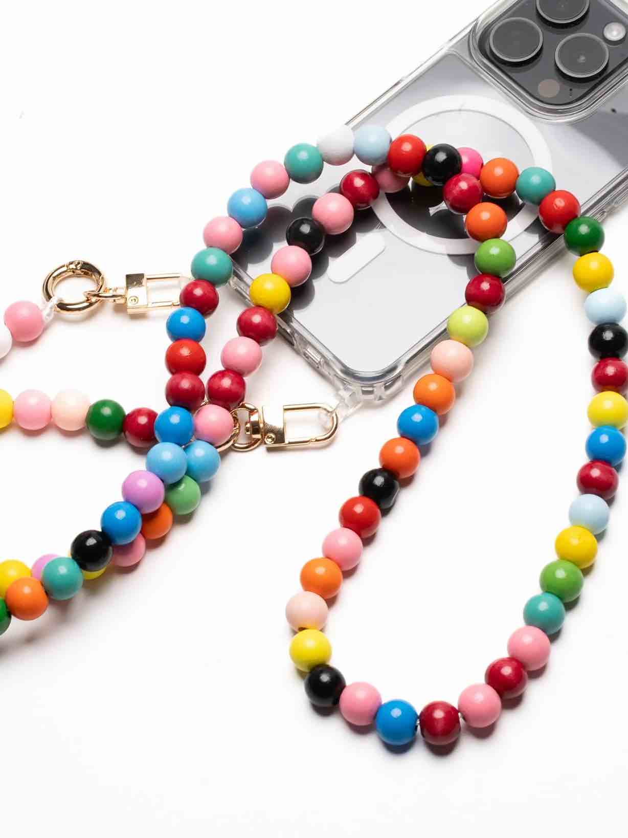 The vibrant beads strap look makes the pink phone cord case both playful and practical – keeping your smartphone safe and always accessible.